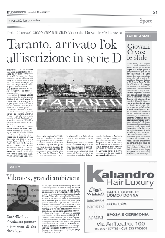 Giovani Cryos, le sfide [Taranto Buonasera]